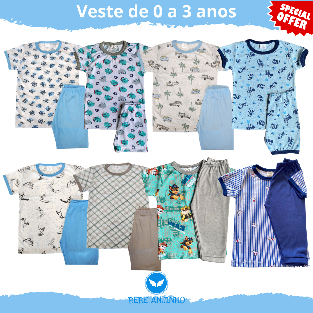 Prepare seu pequeno para noites tranquilas e fresquinhas com nosso pijama infantil masculino de verão! Feito com tecido leve e respirável, o conjunto é ideal para os dias mais quentes, proporcionando conforto e liberdade para o bebê dormir bem.